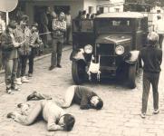1. jízda historických užitkových vozidel - Písek 1987ZO SVAZARMU VETERAN CAR CLUB PÍSEK. 2.etapová akce se jela 26. září 1987 a cíl se společným závěrečným večerem byl naplánován v areálu zříceniny Helfenburg, cca 16 kilometrů od Vodňan. Účast takových vozidel na veteránských akcích se Svazarmu ideologicky příliš nezamlouvala, ale protože oba jmenovaní měli řadu kamarádů sběratelů právě vojenské techniky, přesvědčili v roce 1987 nejen předsedu klubu Josefa Drašnara (který byl jednoznačně pro), ale i většinu tehdejších členů píseckého klubu k uspořádání akce pro tato vozidla. A co víc, protože šlo o vozidla se značně vyšší než normální spotřebou, dokonce prosadili, aby klub pro přihlášené účastníky zajistil levný nízkooktanový letecký (nebo to tehdy byl technický?) benzín! Tím se VETERAN CAR CLUB PÍSEK stal prvním průkopníkem, který se takové akce odvážil. Petr Hošťálek (vpravo) aby Emilovu neúčast eliminoval a první akci tohoto druhu podpořil, přihlásil ze své sbírky nákladní vozidla hned tři. z Branně Sportovního Areálu Hradiště (zkratka B.S.A. na plakátu), a na to, že se jednalo o první akci tohoto druhu, byla účast nevídaná. Přihlásilo se sto účastníků z celé republiky, většinou s veterány vojenskými - z nichž bylo 19 džípů! A chyba! Na fotce je sice nezpochybnitelný Jeep při zdolávání terénní vložky, jenže podle výsledkové listiny měl tohle startovní číslo pan Johana z Chebu s německým Kübelwagenem KdF 82, který se v celkovém pořadí umístil na 22. místě... Na tomhle záběru zdolává brutálně blátivou pasáž Vráťa Leština ze severočeského Libouchce za volantem svého ¾-tunového Dodge WC-51. byl citlivě a úhledně zrestaurovaný "řeznický valníček" Praga Piccolo 1939 s vyplechovanou nákladní karoserií typu Normand, používaný předchozím majitelem pro převoz čuníků. Do soutěže jej přihlásil Ivan Sakal z Týna nad Vltavou, člen VCC České Budějovice. Vpravo při okraji váhy stojí Petr Škrna (VCC Písek) Petr Hošťálek přihlásil do soutěže náklaďák Škoda 256b r.v. 1945. Na snímku je s nezbytnou "startkou bez filtru" v zubech při zvláštní zkoušce na přesnost zastavení zadním kolem ve vyznačeném čtverci. Vůz o nosnosti 2½-tuny měl 6-válcový benzínový motor 3.137 ccm OHV o výkonu 80 ks (58,84 kW). Vlevo opřený předseda klubu Pepík Drašnar - bolela ho záda od manipulace se sudem benzínu, vedle v kombinéze Jirka Pecín... Jeep Willys-MB se kterým se jeho řidič Petr Fischer (Luka nad Jihlavou) v celkové klasifikaci umístil na 31. místě. osobní vůz Škoda Popular byl tehdy prvním veteránem, s nímž absolvoval jízdu mladý Jiří Pecín z VCC Písek. Z Liberce přijel Mirek Šourek se svým Jeepem Willys-MB, který se umístil jako 41. v pořadí. Jeep Willys MB se kterým se jeho řidič Petr Fischer (Luka nad Jihlavou) v celkové klasifikaci umístil na 17. místě. Druhým zúčastněným vozem ze stáje Petra Hošťálka byl předválečný lehký náklaďáček Hansa 1100 start. číslo 32, řízený posádkou Dan Heřman (v kanadách vlevo) a Jana Heřmanová, Petrova manželka. Vůz byl v dochovaném stavu, jen zpojízdněný, přestříknutý na polní šeď a přezutý na disky s novými pneu. Žádná elegance - a tak nebylo divu, že při závěrečném hodnocení dostal jako zvláštní cenu "Zlatý citron" za nejhorší vozidlo, ač jel jak hodinky... Škoda 430 původně čtyřdvéřový otevřený faeton, který nechal první majitel přestavět v českobudějovické karosárně na uzavřený sedan, předvedl Martin Kordina, předseda VCC České Budějovice, ve finále odměněný za nejlepší dobový oblek. V pozadí je vidět nákladní Tatra T 805. Impozantní vojenská Tatra 128 byl těžký dvounápravový armádní náklaďák s 8-válcovým vzduchem chlazeným motorem a pohonem 4x4, který ze své sbírky nákladních vozů Tatra přivezl předvést Jiří Hlach z obce Plav u Č. Budějovic. byl původně armádní vůz sovětské produkce UAZ 469. Přijel s ním Míra Kindl z VCC České Budějovice, který jej používal jako své soukromé vozidlo v denním provozu. Třetí vůz ze stáje Petra Hošťálka, valníček Škoda 430 z roku 1929 řídil Jirka Kindl ze Suchého Vrbného, člen VCC České Budějovice, jemuž dělala spolujezdce manželka. Na druhém snímku jsou při plnění úkolu předvedení "stabilizované polohy zraněného". Získali cenu za nejstarší vozidlo. |